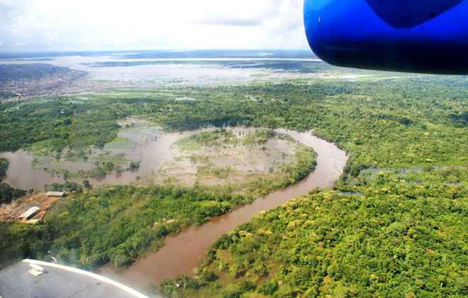 As more and more water discharges onto Amazonian rivers, the regular river course can no longer contain the water, which overflows onto low-lying floodplain adjacent to the rivers.