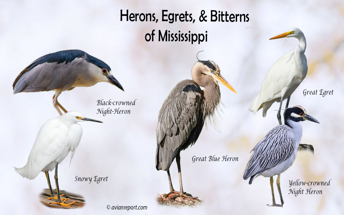 Species of Herons, Egrets, and Bitterns in Mississippi