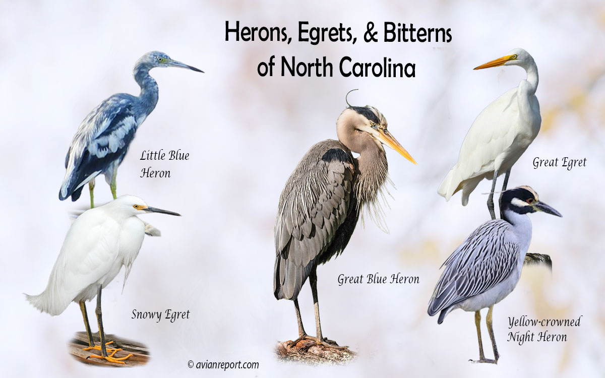 While most North American herons, egrets, and bitterns have been recorded in North Carolina (some as vagrant or accidental), this guide focuses on species whose official range includes the Tar Heel State, as documented by the eBird/Science platform.