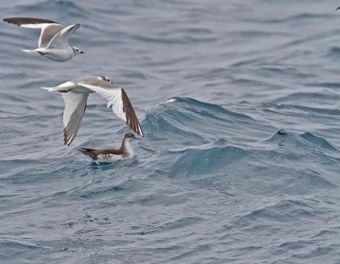 Albatrosses and storm petrel are characteristic species of pelagic waters.