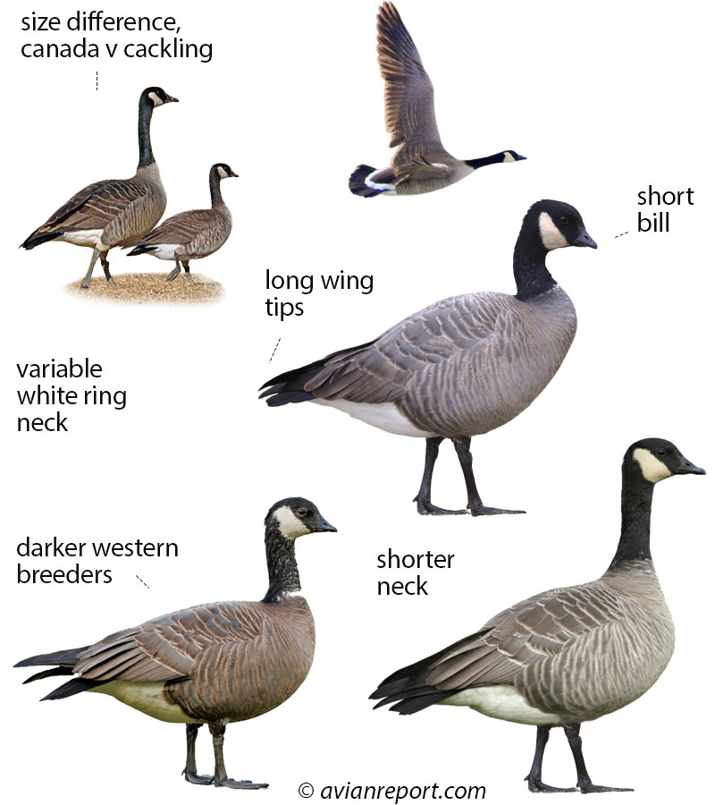 Compare: Canada Goose neck and head are black. Greater White-fronted Goose has the bill and legs pink-orange.